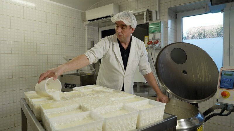 Frischkäseproduktion in der Sennerei Hatzenstedt.Bild: © ORF/Produktion West/Gerhard Mader