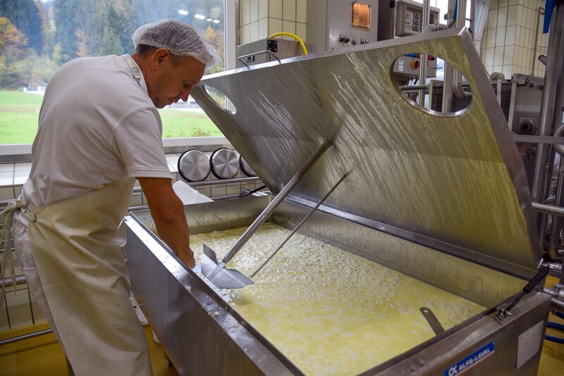 Frischkäse im Entstehen.Bild: © ORF/Produktion West/Gerhard Mader