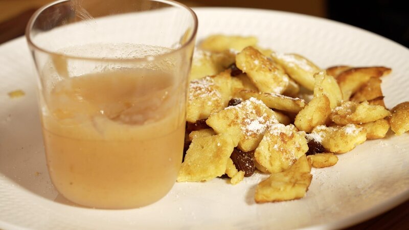 Topfenschmarren mit Apfelmus.Bild: © ORF/Produktion West/Gerhard Mader
