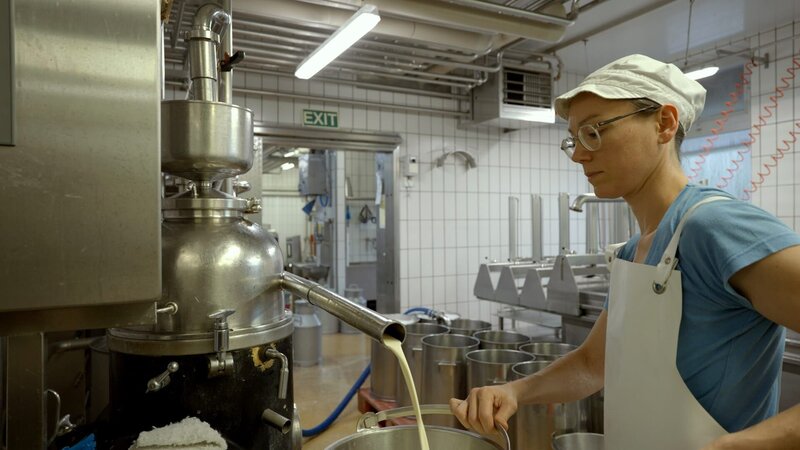 Isabelle Zulauf bei der Verarbeitung der frischen Milch in der Sennerei Bachtel in Wernetshausen/Schweiz.Bild: © ORF/Produktion West/Gerhard Mader