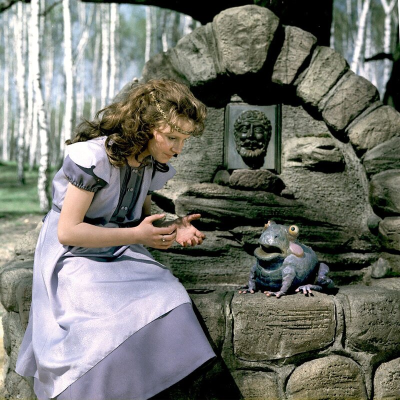 Prinzessin Henriette (Jana Mattukat) verspricht dem Frosch alles, was er will, aber dafür soll er die goldene Kugel aus dem Brunnen holen.Bild: © MDR/Progress Film-Verleih