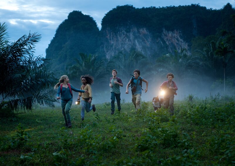 Hund Timmy, George (Valeria Eisenbart, l.), Anne (Neele Marie Nickel, 2.v.l.), Julian (Quirin Oettl, 2.v.r.) und Dick (Justus Schlingensiepen, r.) befinden sich mitten in einem neuen Abenteuer: Auf ihrer Urlaubsinsel soll ein Piratenschatz versteckt sein, dessen Wert einer Freundin helfen könnte ...