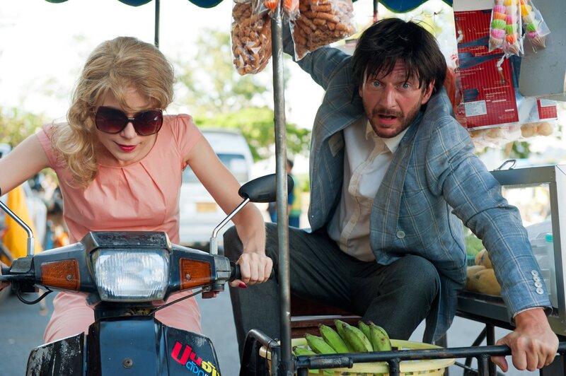Mit Hilfe eines Tuk-Tuks versucht George (Valeria Eisenbart) die Gangster einzuholen, die sich mit dem ergaunerten Schatz absetzen wollen.