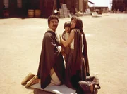 Während es zwischen den verfeindeten Clans zu einer wilden Schießerei auf dem Friedhof gekommen ist, ist Joe im Lager der Rojos auf die gefangene Marisol (Marianne Koch) gestoßen, die von ihrem Mann beim Pokern an Ramón verspielt wurde. Er übergibt sie den Baxters.Bild: © BETAfilm