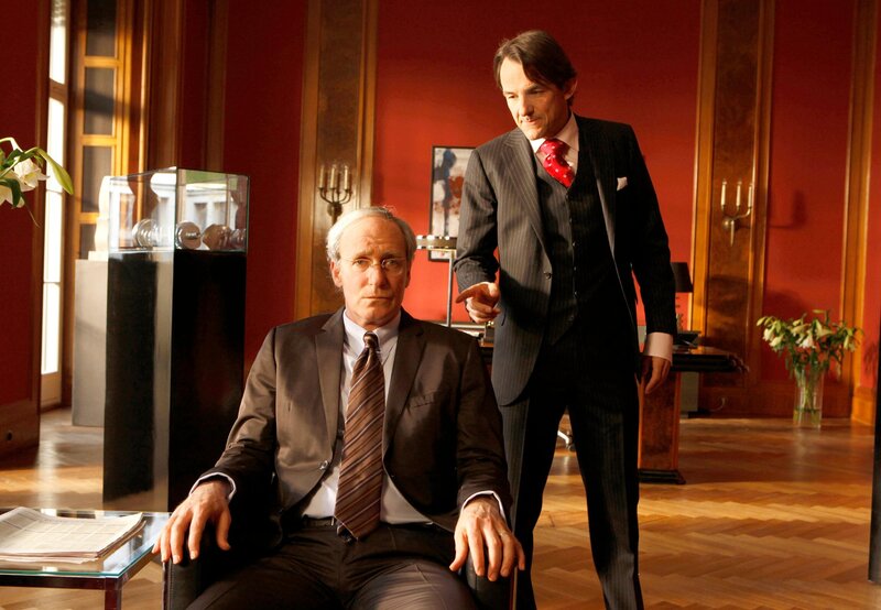 Automobilbauer Friedrich (August Zirner, re.), seine Tochter Isabella (Karoline Teska) und der Entwicklungsingenieur Sebastian (Matthias Koeberlin) finden heraus, dass jemand die Pläne für den neuen Motor der Firma manipuliert hat.Bild: © ARD Degeto/Frank Dicks