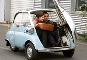 Auf engstem Raum: Isabella (Karoline Teska) lässt sich von dem smarten Sebastian (Matthias Koeberlin) in einem seiner Oldtimer nach Hause fahren.Bild: © ARD Degeto/Frank Dicks