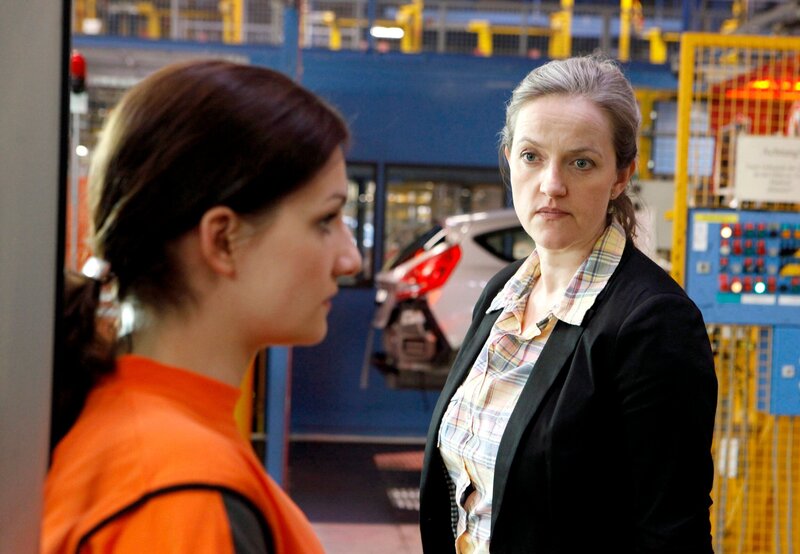 Werksleiterin Schmitz (Sybille J. Schedwill, rechts) steht der neuen Mitarbeiterin Isabella (Karoline Teska) sehr skeptisch gegenüber.Bild: © ARD Degeto/Frank Dicks