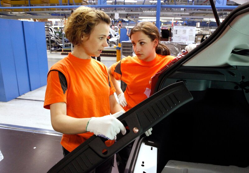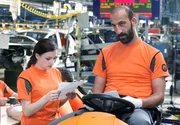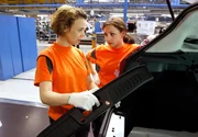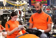 Die kesse Alex (Greta Galisch de Palma, links) erklärt der neuen Mitarbeiterin Isabella (Karoline Teska), wie man ein Auto richtig montiert.Bild: © ARD Degeto/Frank Dicks