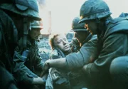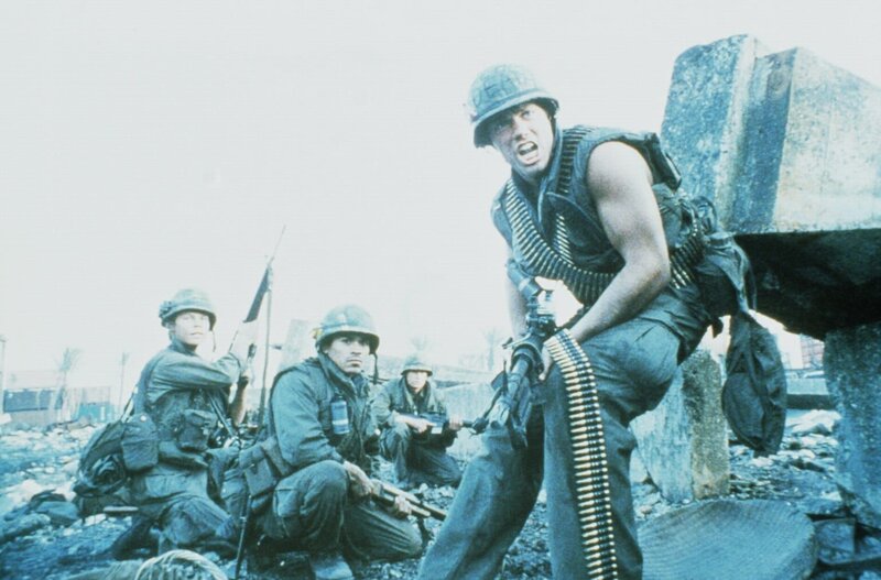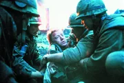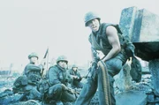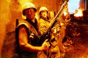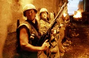 Mit dem skrupellosen Frontschwein Animal Mother (Adam Baldwin, r.) als Anführer gehen die Marines vor einer zerbombten Häuserfront in Stellung, in der sie einen Heckenschützen vermuten ...