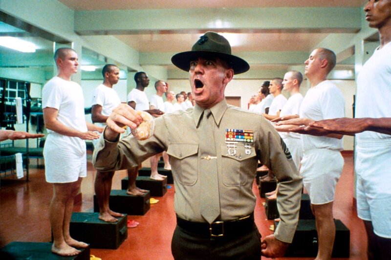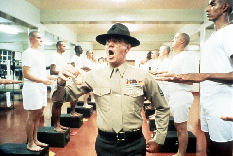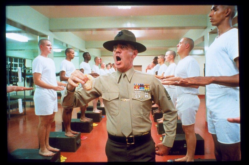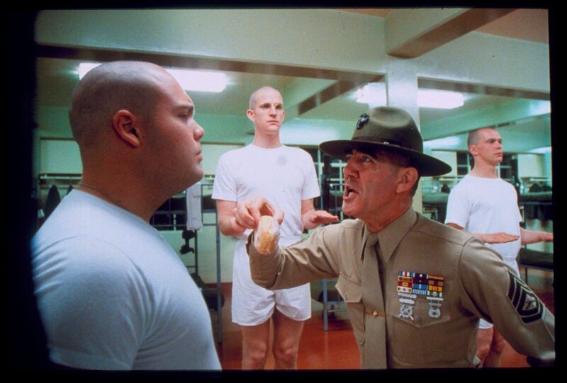 Drill to Kill: Im Ausbildungslager der US-Marines werden die Rekruten vom gnadenlosen Sergeant Hartman (Lee Ermey, M.) zu willenlosen Tötungsmaschinen gedrillt ...