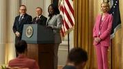 US-Präsidentin Danielle Sutton (Viola Davis) spricht bei einer Pressekonferenz zu Journalisten.