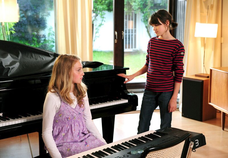 Alex (Jörg Schüttauf) erklärt Sophie (Julia Richter, re.) und Paula (Grace Reutlinger, Mitte), dass seine Tochter Charlie (Annika und Francesca Bolkart, hinten) so gereizt reagiert, weil Paula auf dem Flügel ihrer verstorbenen Mutter musiziert hat.