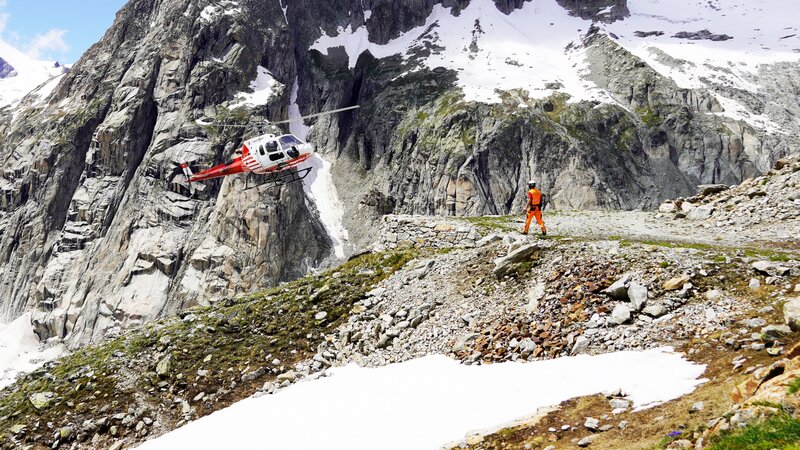 Fuer seine Einsaetze im Hochgebirge verwendet Peter Schwitter einen HelikopterBild: © SPIEGEL TV
