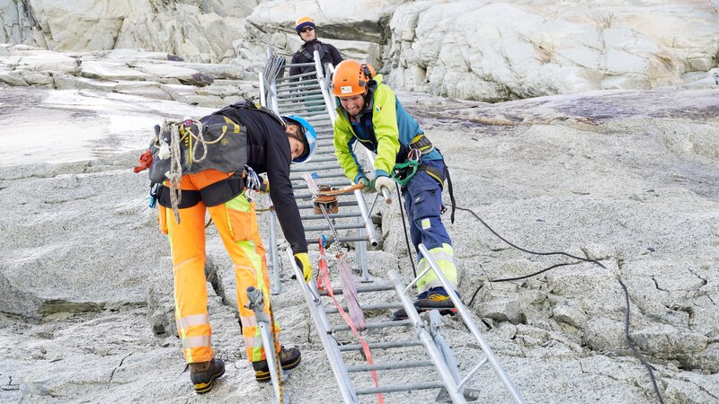 Reparaturarbeiten des Wanderweges unterhalb der Oberaletsch Berghuette in 2600 Höhe, SchweizBild: © SPIEGEL TV