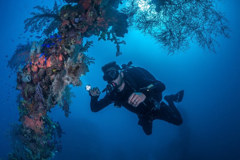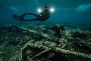 Die Lagune von Chuuk: Unterwasserarchäologe Florian Huber und sein Team untersuchen, wie weit fortgeschritten der Zerfall der alten Flugzeuge und Schiffswracks ist, um die Gefahr einschätzen, die hier auf die Umwelt zurollt.