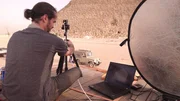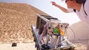Vor der Cheopspyramide werden Teleskope des CEA aufgestellt.Bild: © ZDF und Quentin Esperse