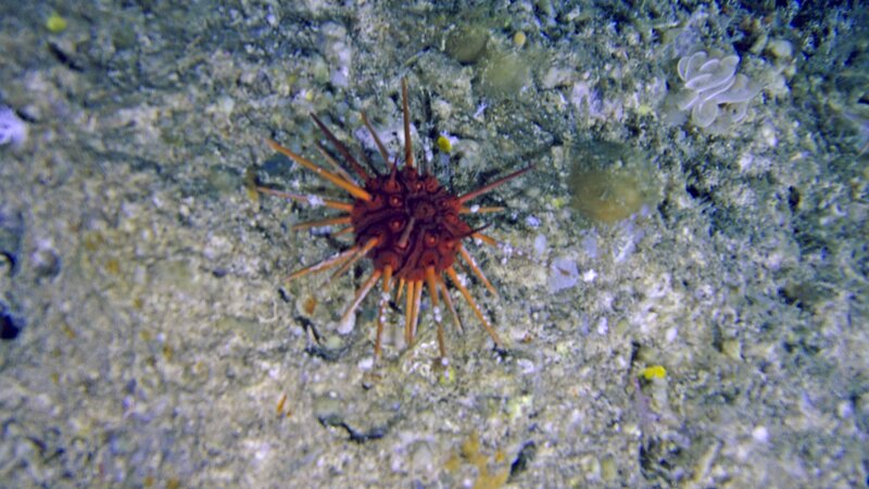Ein roter Seeigel auf Korallenfelsen.Bild: © ZDF und NHK.