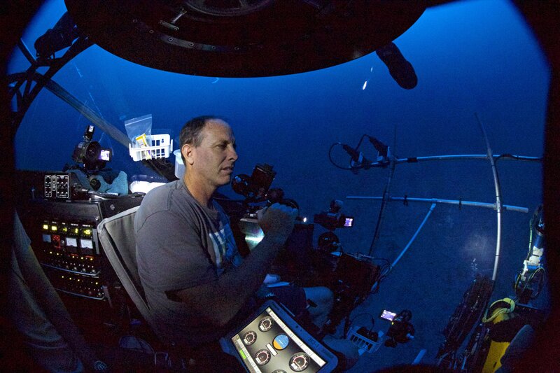 Dr. Mark Erdmann im Tauchboot auf der Suche nach lebenden Fossilien.Bild: © ZDF/elina yamasaki