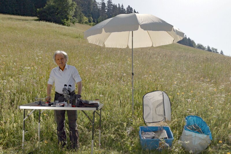 Schmetterlingsexperte Alexander Weihs (Naturschutzbund Steiermark) zählt Nachtfalter mithilfe von Leuchtzelten im aufgelassenen Grazer Steinbruch Hauenstein.