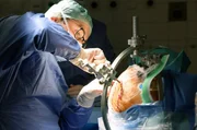 Dem Parkinson-Patienten werden zwei Elektrodenkabel etwa acht Zentimeter tief ins Gehirn implantiert.Bild: © Docuvista Filmproduktion/Marc Nordbruch