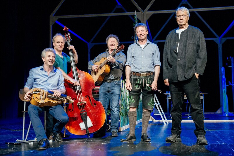 von links: Michael Well, Stefan Merki, Karli Well, Christoph (Stofferl) Well und Gerhard Polt.Bild: © ORF/BR/Julia Müller