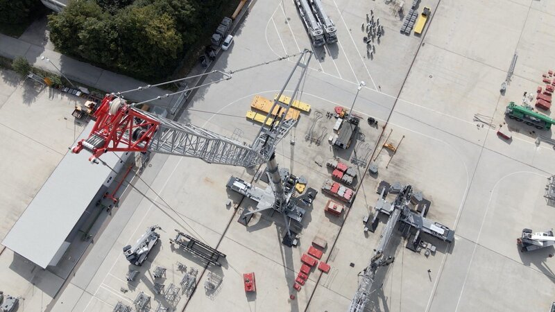 Der LTM 1750 des deutschen Herstellers Liebherr: Er ist der Gigant der Baustellen, ein Teleskopmobilkran der Superlative. Mit einhundertacht Tonnen Fahrgewicht, die sich auf neun Achsen verteilen, ist er der größte Mobilkran, der mit montiertem Teleskopausleger auf öffentlichen Straßen fahren darf. Mit dem zweiundfünfzig Meter langen Metallarm kann er bis zu achthundert Tonnen heben - das entspricht etwa dem Gewicht von vierhundert Mittelklasse-Limousinen.