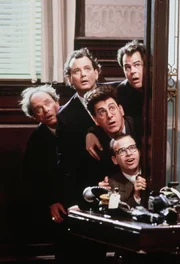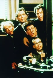 Am liebsten würde Richter (Harris Yulin, l.) die Ghostbusters ein für allemal loswerden. Doch als auf einmal paranormale Erscheinungen auftauchen, muss er notgedrungen auf die Ghostbusters Venkman (Bull Murray, 2.v.l.), Stantz (Dan Aykroyd, r.), Spengler (Harold Ramis, M.) und Tully (Rick Moranis, vorne) zurückgreifen ...Bild: © DMB