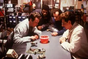 Stantz (Dan Aykroyd, l.), Spengler (Harold Ramis, r.), Venkman (Bill Murray, 2.v.r.) und Winston (Ernie Hudson) untersuchen den Schleim.Bild: © DMB
