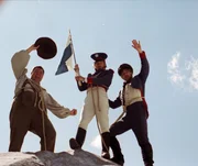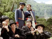 Leutnant Josef Naus (Johannes Zirner, Mitte) hat mit seinem Burschen Schani (Andreas Nickl, rechts) und Waste (Dieter Fischer) den Gipfel der Zugspitze bezwungen.Bild: © BR/Marco Orlando Pichler