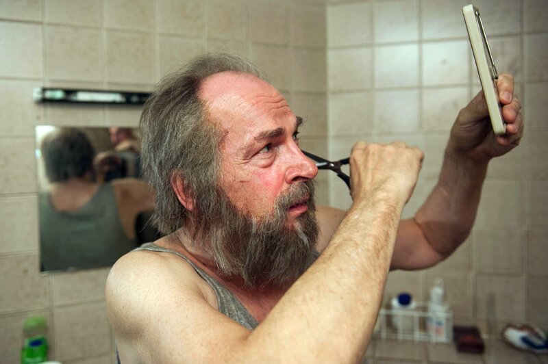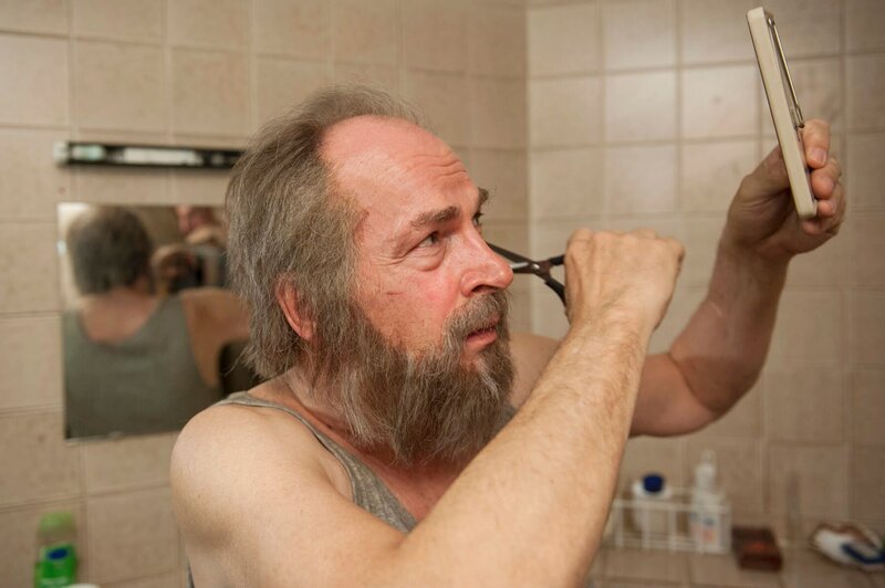 Hans (Herbert Knaup) ist entschlossen, einen neuen Anfang zu machen. Dazu gehört, dass er sich die lange vernachlässigte Mähne und den Bart stutzt.Bild: © SWR/Stephanie Schweigert