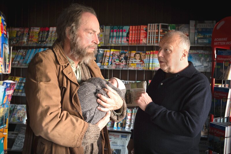 Glaubt Herr Wenzel (Thomas Thieme, rechts) Hans Scholz (Herbert Knaup), dass es sich bei dem Baby um sein Enkelkind handelt? Auf jeden Fall kann er die Sehnsucht verstehen, sein Enkelkind sehen zu wollen, seine eigene Tochter hat den Kontakt zu ihm abgebrochen.Bild: © PLURIMEDIA / SWR / Martin Furch