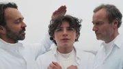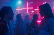 Timotheus (Serafin Mishiev, 2.v.l.) hat sich freiwillig in ein sogenanntes Seelsorge Camp begeben, um sich dort von Pastor Sebastian (Thimo Meitner, li.) und Dr. Schäfer (Martin Lindow, re.) von seinen Gefühlen für Jonas (Lennox Halm, 2.v.r.) „heilen“ zu lassen.Bild: © Kinescope Film