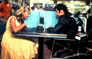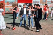 Als Sandy (Olivia Newton-John, l.) überraschend an der High School erscheint, will sich Danny (John Travolta, r.) vor seinen Freunden keine Blöße geben ...Bild: © Kabel Eins Classics