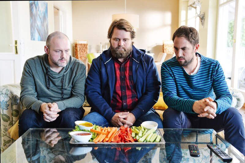 (1. Staffel) - Haben die "Knallerkerle" Jakob Schneider, Antoine Monot Jr. und Jan Hasenfuss (v.l.n.r.) eine Gemüsephobie?