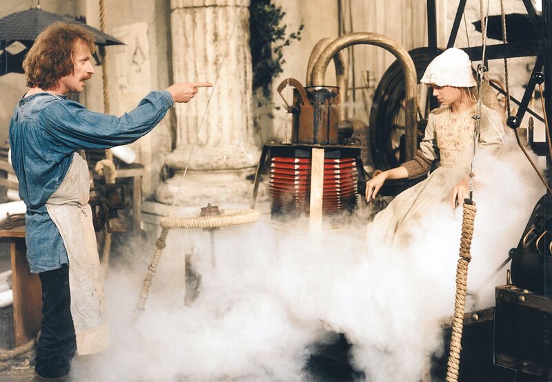Grittas (Nadja Klier, rechts) Vater (Hermann Beyer, links) ist ein leidenschaftlicher Erfinder und arbeitet gerade an einer Thron-Rettungsmaschine für den König.