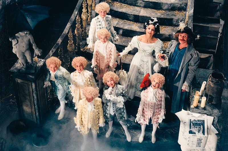 Doch mit Grittas Freiheit ist es vorbei, als ihr Vater Julius (Hermann Beyer, rechts) beschließt, die vornehme Gräfin Nesselkrautia (Suher Saleh, 3. von rechts) zu heiraten. Diese sorgt dafür, dass Gritta in eine Klosterschule abgeschoben wird.