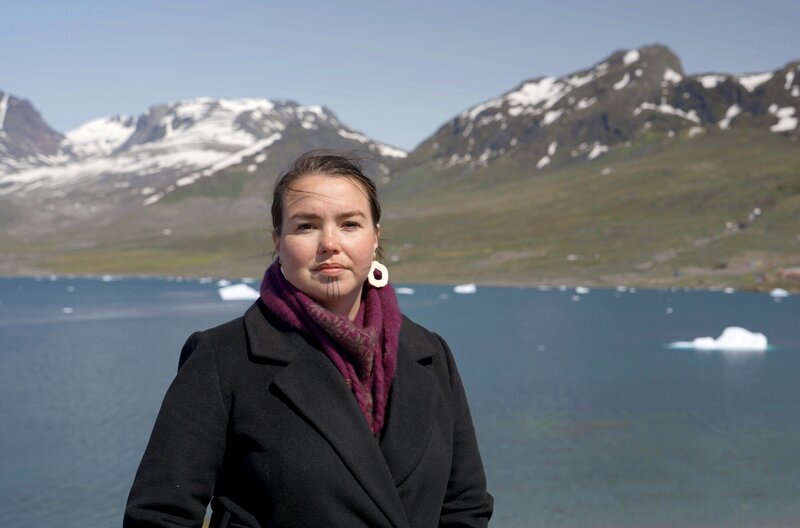 Umweltaktivistin Avaaraq Bendsten vor den Bergen von Kuannersuit in der Nähe von NarsaqBild: © Temps Noir