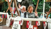 Dieter Hallervorden (li.) und seine Ehefrau Christiane Hallervorden (re.) genießen die Lichtensteiner Ballonfahrt im Europa-Park und winken Fans zu.Bild: © WDR/eitelsonnenschein/Till Vielrose