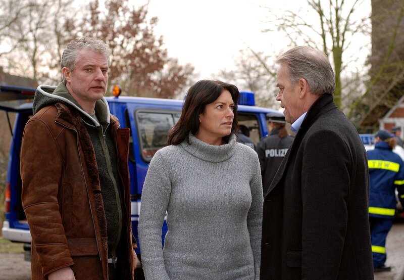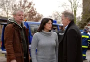 Katja (Christine Neubauer) hat das Gefühl, dass Kommissar Krückeberg (Jürgen Heinrich, re.) und sein psychologisch geschulter Kollege Roman (Filip Peeters) nicht mehr an ein gutes Ende des Falles glauben.Bild: © ARD Degeto/Gordon A. Timpen