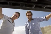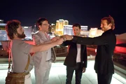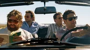 Bevor Doug (Justin Bartha, r.) in den Hafen der Ehe einfährt, will er noch einmal so richtig einen draufmachen und fährt deshalb mit seinen Kumpels Phil (Bradley Cooper, l.), Stu (Ed Helms, 2.v.r.) und seinem zukünftigen Schwager Alan (Zach Galifianakis, 2.v.l.) nach Las Vegas.