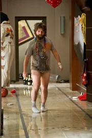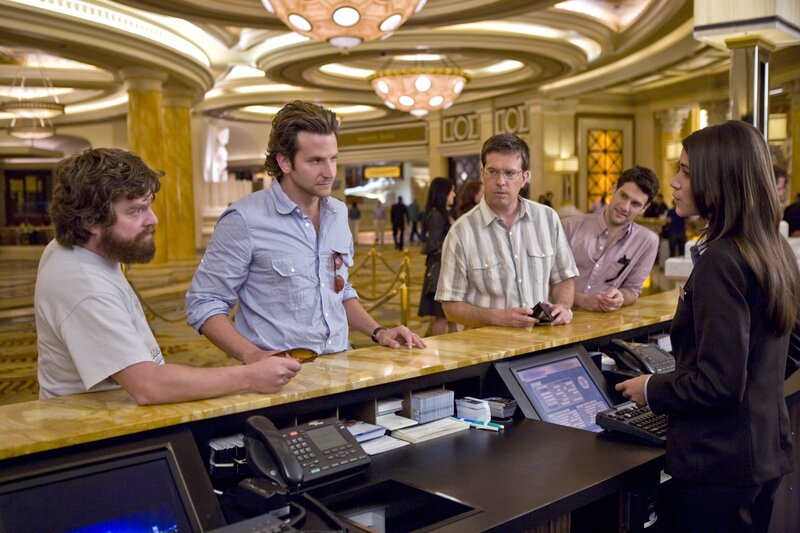 Für Doug (Justin Bartha) heisst es, vom Dasein eines Junggesellen Abschied nehmen. Dies will er mit seinen Freunden tun, mit Phil (Bradley Cooper) und Stu (Ed Helms) sowie seinem Schwager in spe, Alan (Zach Galifianakis) - und zwar standesgemäss: in Las Vegas. Mit der protzigen Karre des Schwiegervaters in der Stadt der Sünde angekommen checken die vier Partytiger in eine Luxussuite ein. Nach einer Runde Jägermeister auf dem Hochhausdach stürzen sich Doug und seine Freunde Hals über Kopf ins Nachtleben, so dass ihnen am nächsten Morgen jegliche Erinnerung fehlt. Die Raubkatze, die im Badezimmer Alan beim Pinkeln stört, ist dabei noch das kleinste Problem. Ungleich schwerer wiegt, dass vom Bräutigam jede Spur fehlt und die Hochzeitszeremonie bevorsteht. Schleunigst müssen Phil und seine verkaterten Trinkkumpane herausfinden, was er mit seiner Frage auf den Punkt bringt: "Was zum Geier ist letzte Nacht passiert?!" Der Komödienhit des Jahres 2009 ist eine Spurensuche in den Trümmern einer wilden Nacht und lebt von den nach und nach enthüllten irrwitzigen Situationen. Zwei Figuren stehen dabei besonders im Mittelpunkt, und nachdem deren Darsteller erst eingefleischten Komödienfans bekannt waren, sind sie durch "The Hangover" zu Stars geworden. Mit seiner verschrobenen Art steuert Zach Galifianakis als Alan das unberechenbar subversive Element zur Komödie bei. Der stattliche Bartträger wird seither mit vergleichbaren Rollen geradezu eingedeckt. Auch dem vorher einzig aus der US-Version der Serie "The Office" bekannten Ed Helms als Stu diente die Partynacht in Las Vegas als Karrieresprungbrett. Nachdem der Nachfolger "Hangover II" in der Schweiz sogar noch weit erfolgreicher war, kommt im Mai 2013 bereits der dritte Teil ins Kino. Erfreulich für die Fans: Erneut ist die ganze "Hangover"-Bande versammelt.