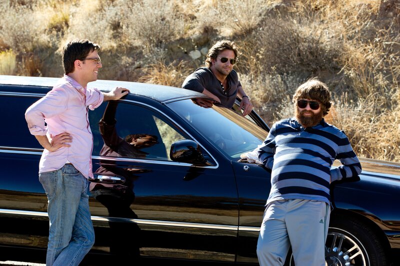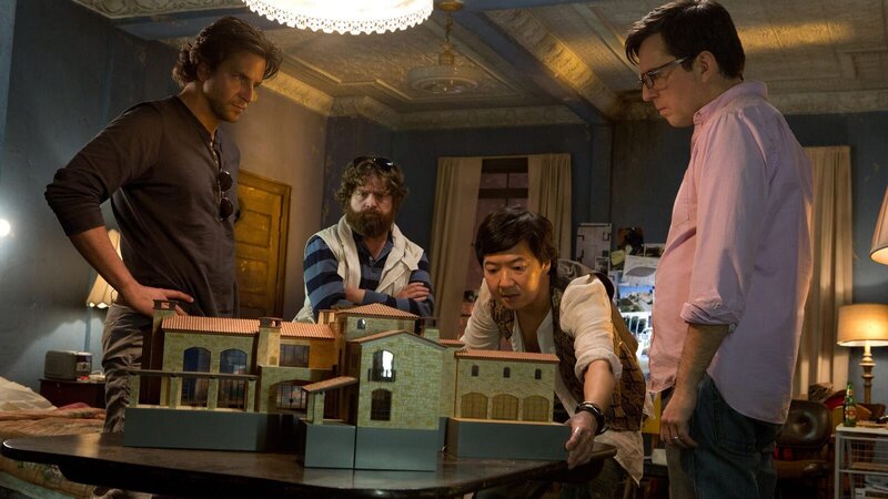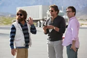 Können Phil (Bradley Cooper, M.), Alan (Zach Galifianakis, r.) und Stu (Ed Helms, l.) dem skrupellosen Mr. Chow die gestohlenen Goldbarren wieder entwenden, um Doug aus Hand des Banditenchefs freizukaufen?; Können Phil (Bradley Cooper, M.), Alan (Zach Galifianakis, r.) und Stu (Ed Helms, l.) dem skrupellosen Mr. Chow die gestohlenen Goldbarren wieder entwenden, um Doug aus Hand des Banditenchefs freizukaufen?