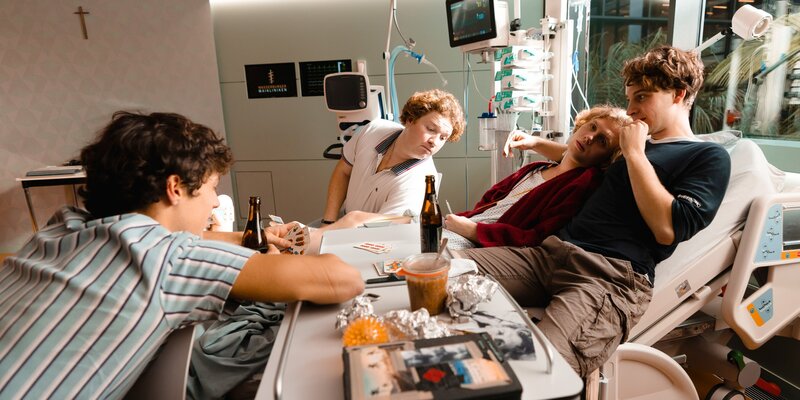 Freundschaft in guten wie in schlechten Zeiten: Die Freunde Kalle (Klaus Steinbacher), Brenninger (Roland Schreglmann), Hannes (Johannes Nußbaum) und Moritz (Leonard Scheicher) zusammen im Krankenhaus (v.l.n.r.)Bild: © ARD Degeto Film/Studiocanal GmbH/Luis Zeno Kuhn