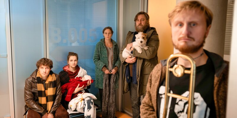 Der Rückhalt von Freunden und Familie ist groß: Die Freunde Kalle (Klaus Steinbacher, l.) und Nele (Lisa Vicari), Hannes’ Eltern Verena (Jeanette Hain) und Hubert (Nicki von Tempelhoff) sowie der Psychatrie-Patient Florian (Michael Kranz, r.) beim Besuch im Krankenhaus.Bild: © ORF/Studiocanal/Luis Zeno Kuhn