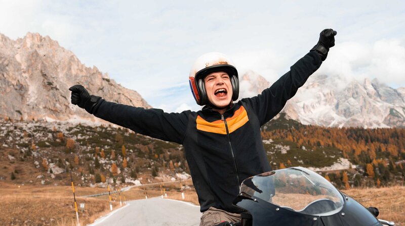 Hannes Vater Hubert (Nicki von Tempelhoff) übergibt Moritz (Leonard Scheicher, l.) die Schlüssel von Hannes Motorrad.Bild: © ORF/Studiocanal/Luis Zeno Kuhn