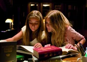 Nachts stellen Erika (Aleen Jana Kötter) und Nanni (Sophia Münster) heimlich Nachforschungen in der Bibliothek von Internat Lindenhof an.Bild: © ZDF/Gordon Mühle