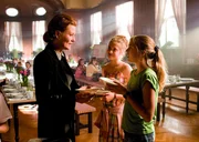 Frau Mägerlein (Suzanne von Borsody) im Gespräch mit Hanni und Nanni (Jana und Sophia Münster) im Speisesaal von Internat LindenhofBild: © ZDF/Gordon Mühle