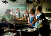 In Ermangelung einer Köchin muss Mademoiselle Bertoux (ganz links, Katharina Thalbach) selbst den Kochlöffel auf Lindenhof schwingen. Einige Schülerinnen sollen ihr dabei helfen.Bild: © ZDF/Gordon Mühle