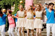 Hanni (Jana Münster), bestärkt von ihrer Schwester Nanni (Sophia Münster), hat es sich zum Leidwesen von Daniela (Nele Guderian) anders überlegt. Sie will nun doch die begehrte Rolle der Julia bei der Schultheateraufführung von Shakespeares Romeo und Julia spielen.Bild: © ZDF/Gordon Mühe