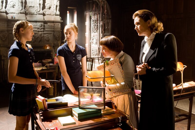 Bei ihren Recherchen in der Schulbibliothek über die Möglichkeit der Existenz eines Schlossgespenstes werden Hanni (Jana Münster) und Nanni (Sophia Münster) von Mademoiselle Bertoux (Katharina Thalbach) und Frau Mägerlein (Suzanne von Borsody) zur Rede gestellt. Im Internat Lindenhof hat es nicht zu spuken, so lautet deren unmissverständliche Anweisung! Die beiden Lehrerinnen wollen unbedingt vermeiden, dass sich diese alberne Gespenstermär unter den Schülern verbreitet.Bild: © UPI - United Pictures International / MKNS